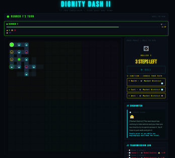 Dignity Dash, the party streaking board game! Take control of a character who by happenstance or bad decisions, find themselves empty-handed on the beach. You must guide them back to their home on the other side of town while keeping as much of their dignity intact as their circumstances allow them to.